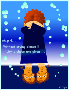 「泣かないで女の子、ライオンの靴をあげるよ」
